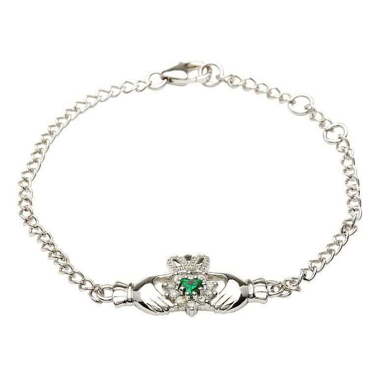 STERLING SILVER GR-CZ CLADDAGH CLUS BRACELET