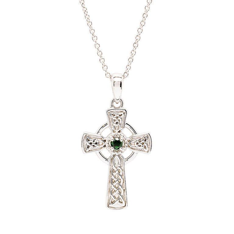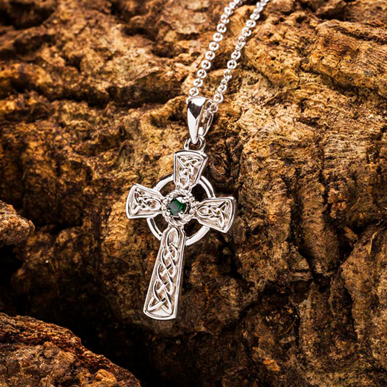 Sterling Silver Green CZ Celtic Cross