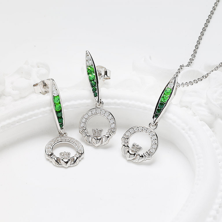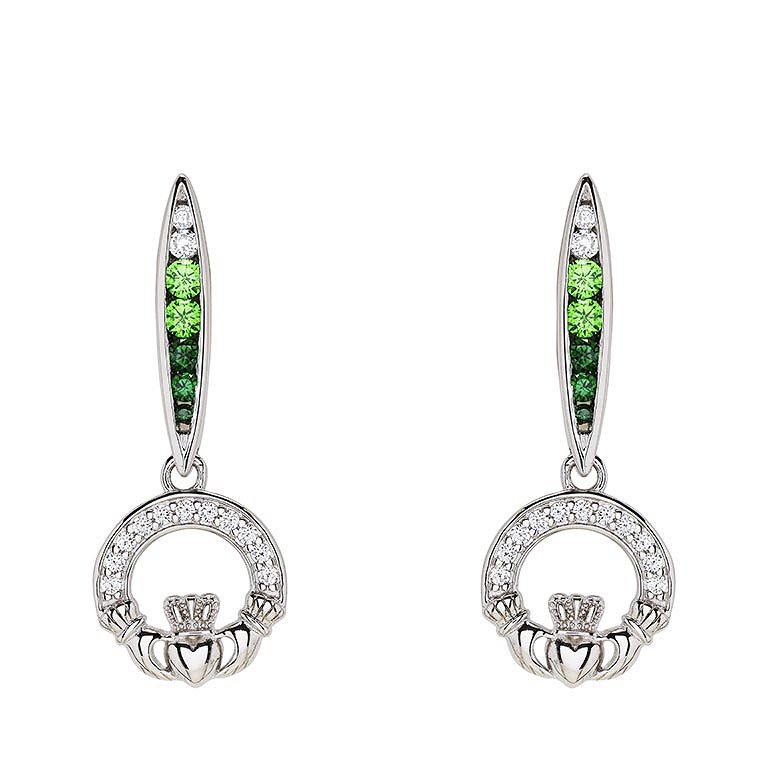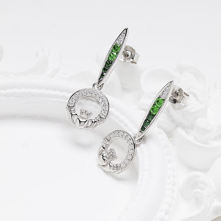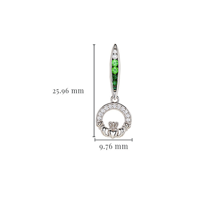 Sterling Silver Green/white CZ Claddagh Earrings