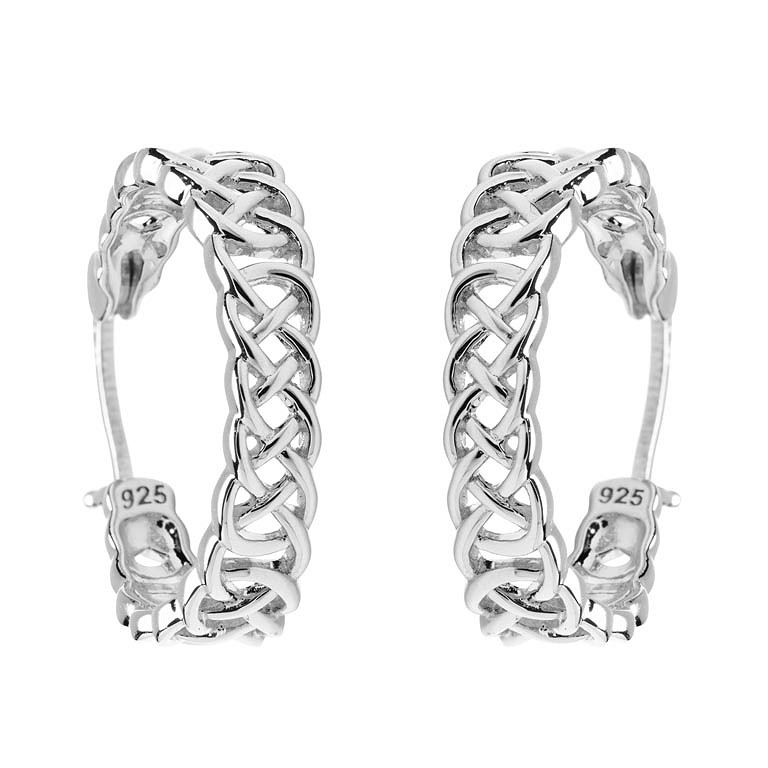 Sterling Silver Large Celtic Hoop Earrings