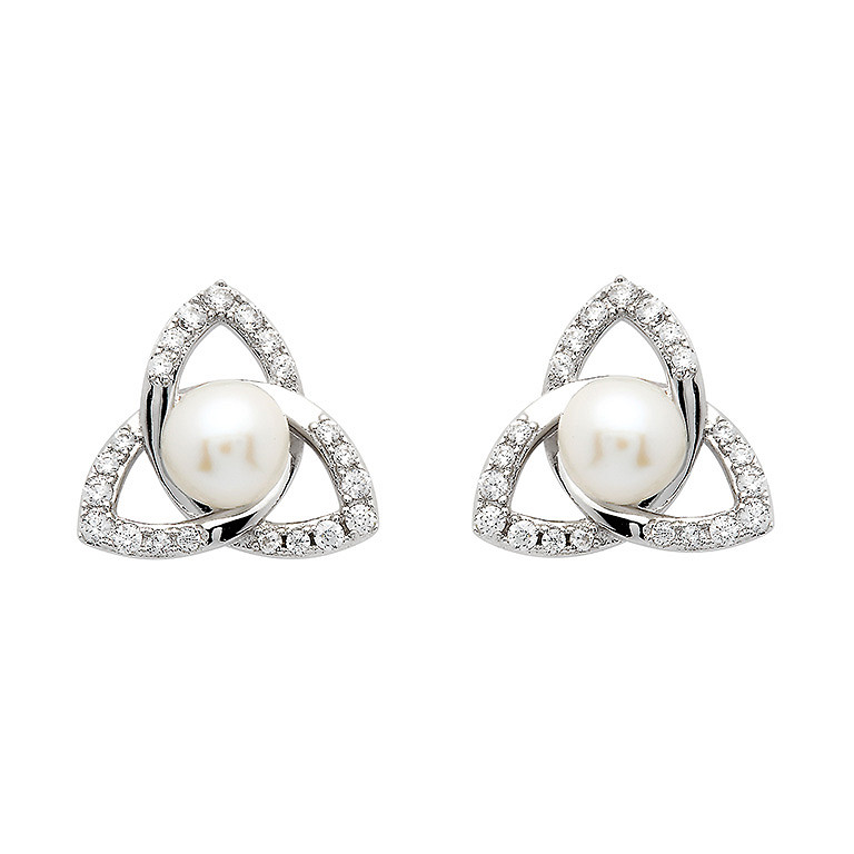 Sterling Silver Trinity Knot Pearl Stud Earrings