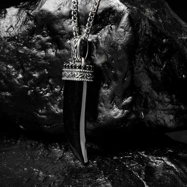 Sterling Silver Black Spinel/Onyx Horn Pendant Hunter