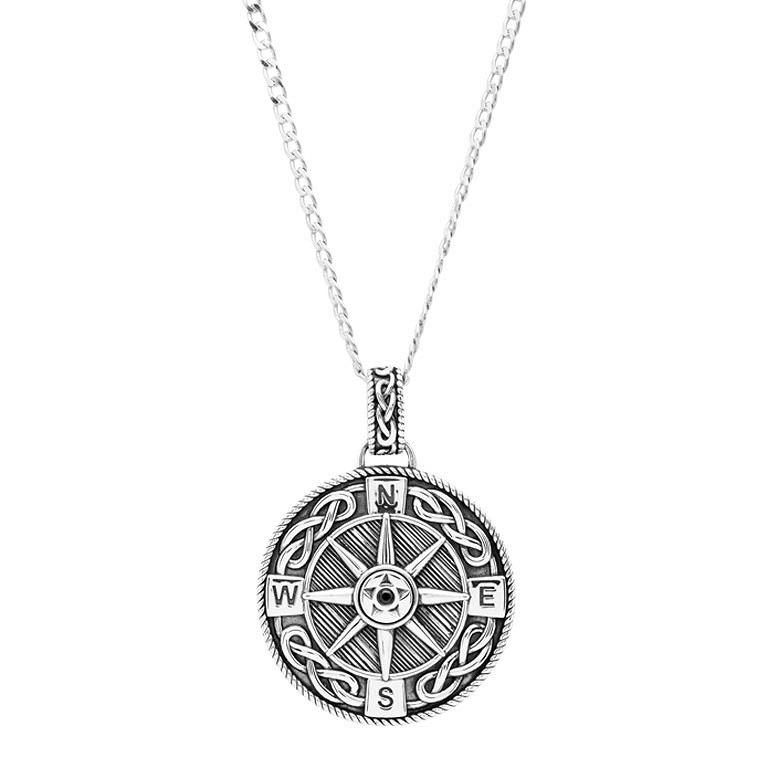 Sterling Silver Gents Compass Pendant Earth Collection