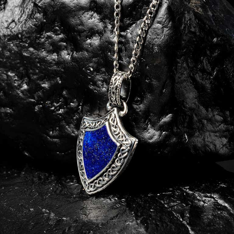 Sterling Silver Gents Lapis Shield Pendant Water Collection