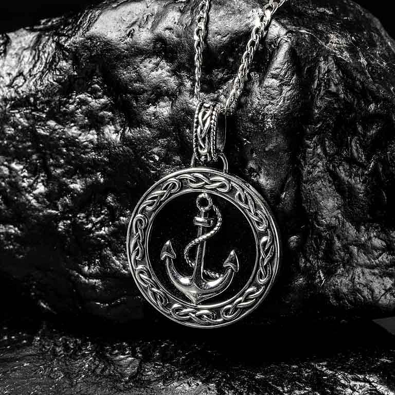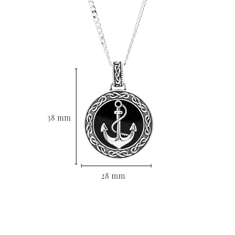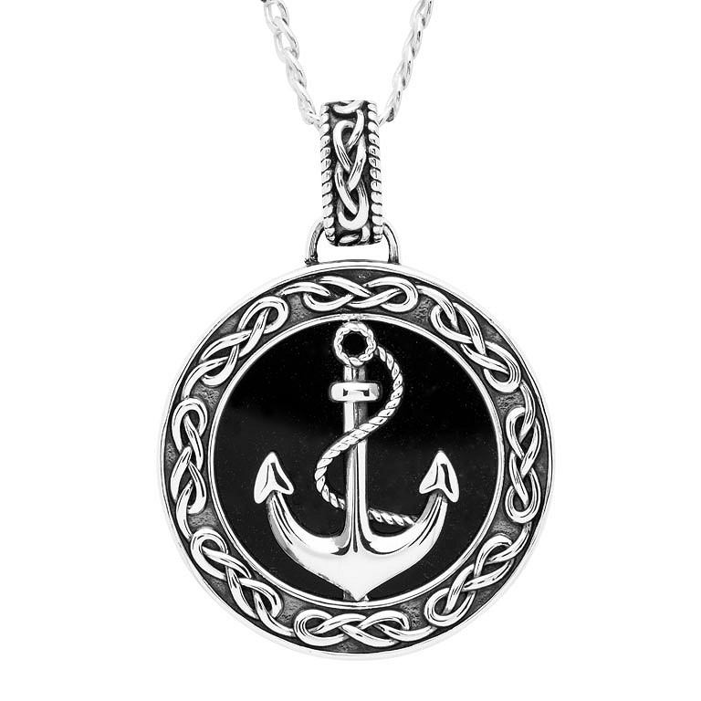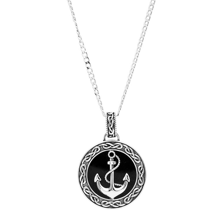 Sterling Silver Gents Onyx Anchor Pendant Sky Collection