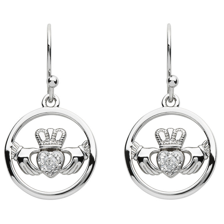 Platinum Plate White Claddagh Earrings Swarovski