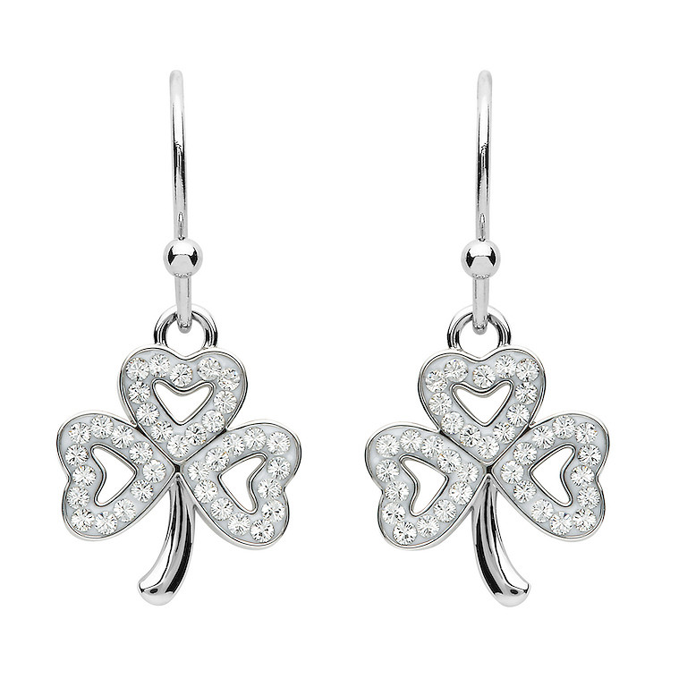 Platinum Plate White Shamrock Earrings Swarovski