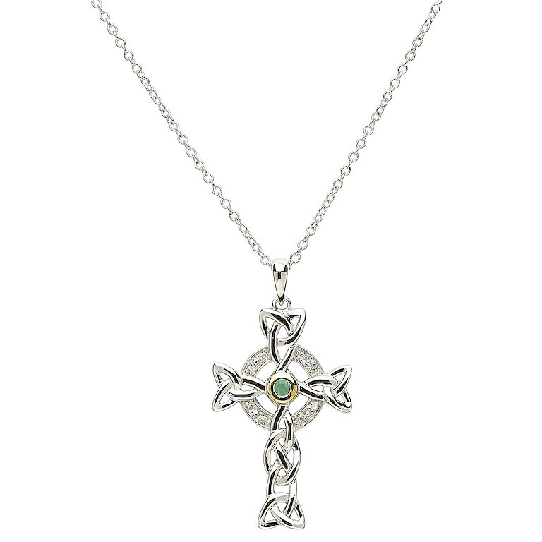 Platinum Plated Cross Green/ White Pendant Swarovski