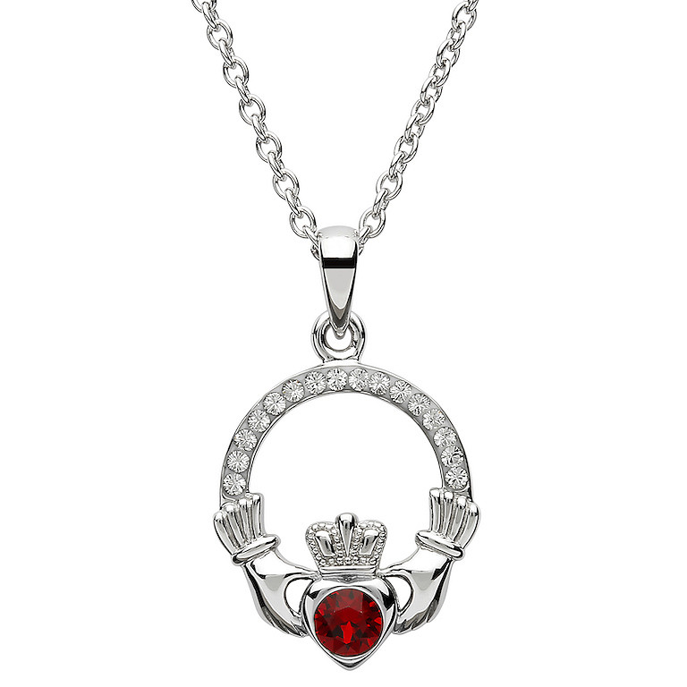 Platinum Plated January Claddagh Pendant Swarovski