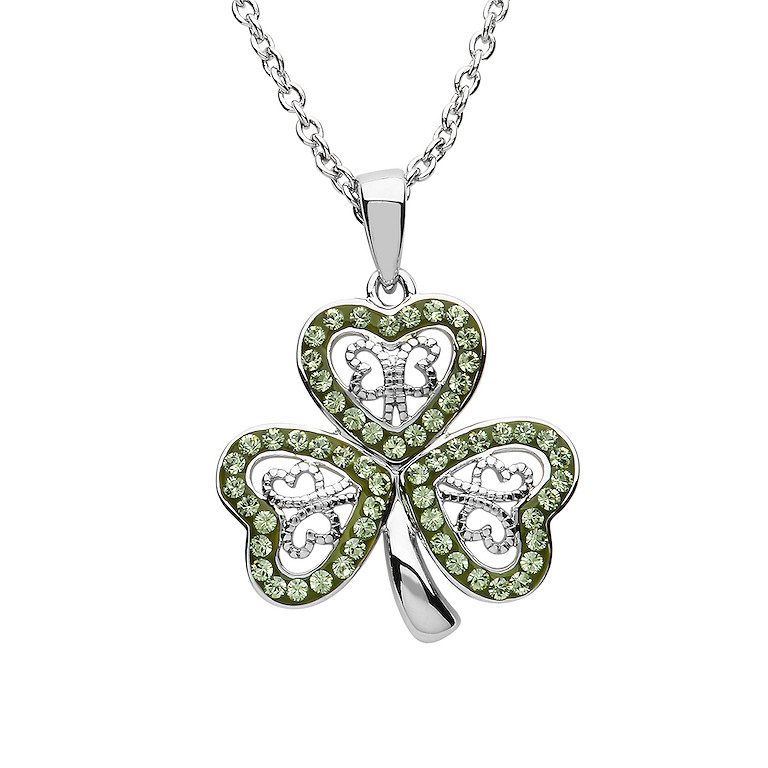 Platinum Plated Peridot Shamrock Pendant Swarovski