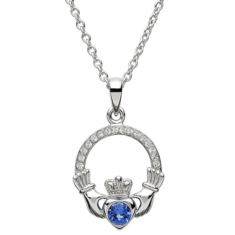 Platinum Plated September Claddagh Pendant Swarovski
