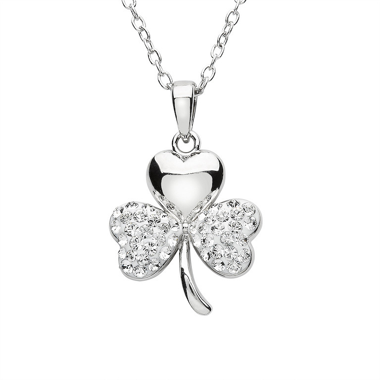 Platinum Plated White Shamrock Pendant Swarovski