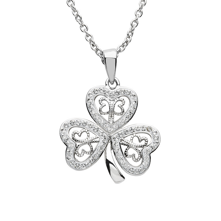 Platinum Plated White Shamrock Pendant Swarovski