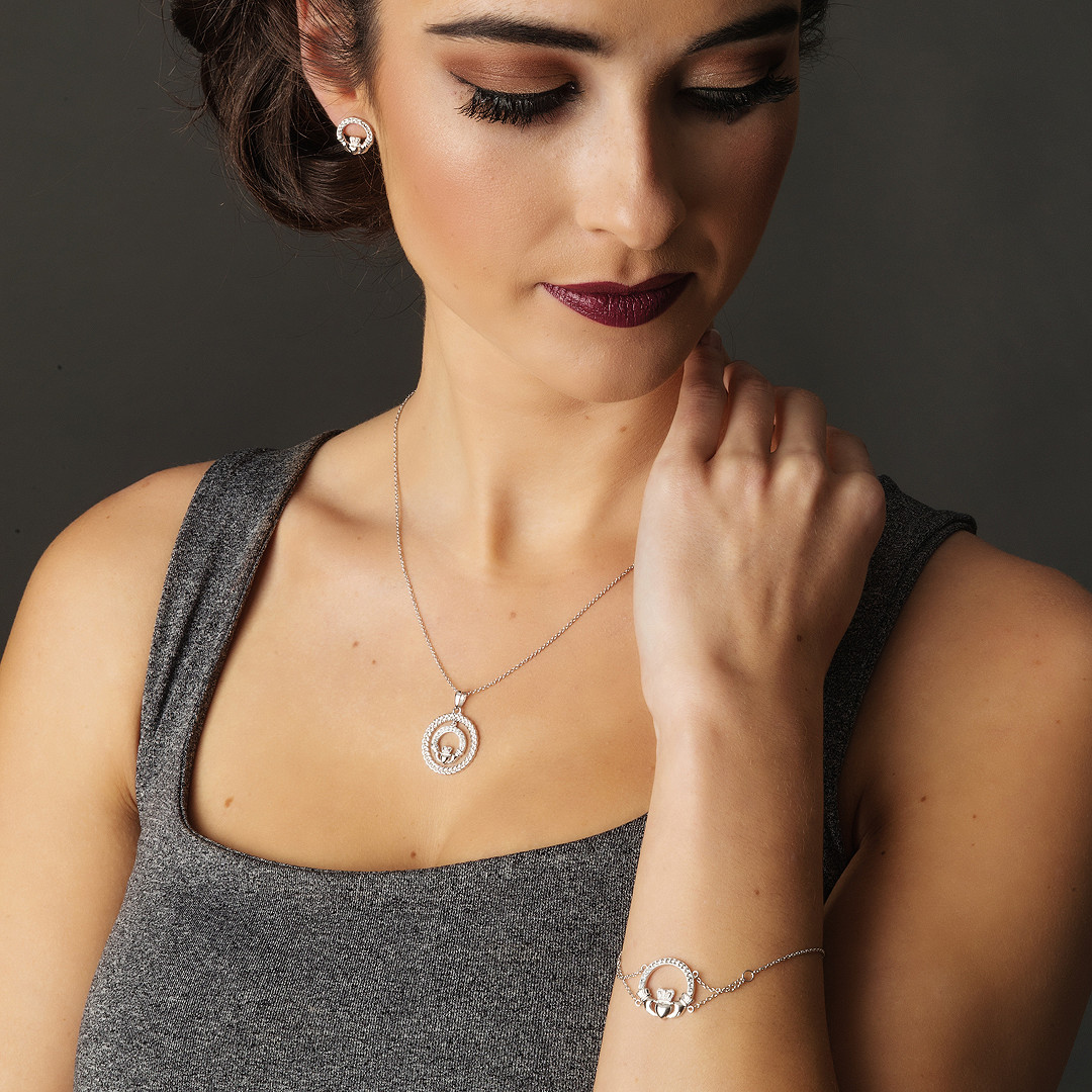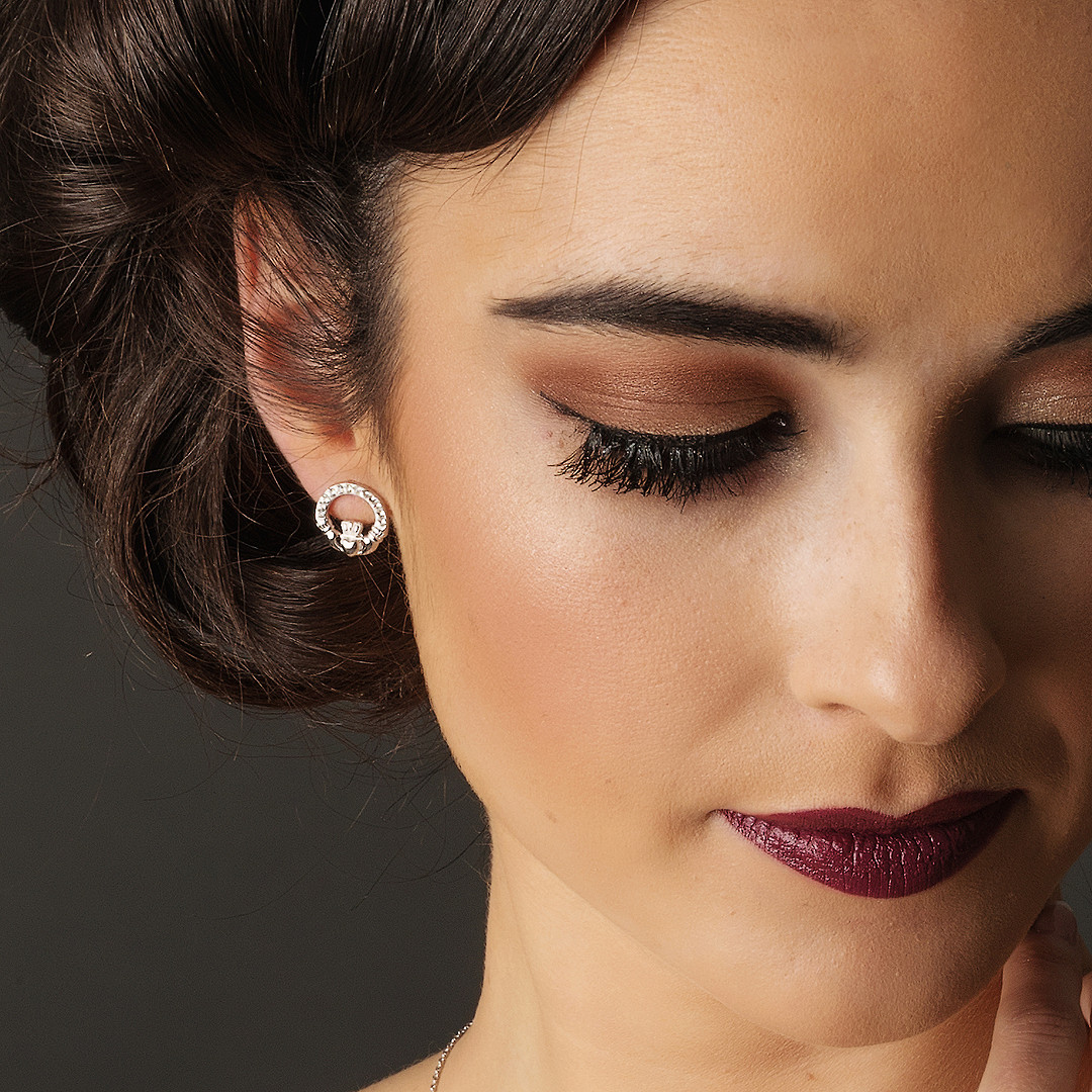 S Silver White Swarovski Crystal Claddagh Stud Earring