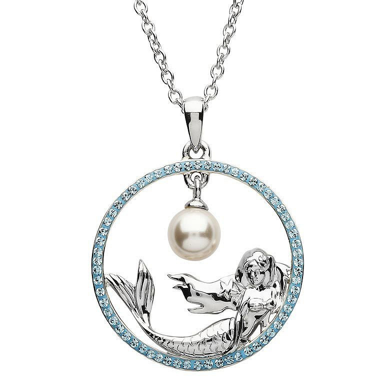 Silver Mermaid Necklace Aqua Swarovski Crystals and Pearl