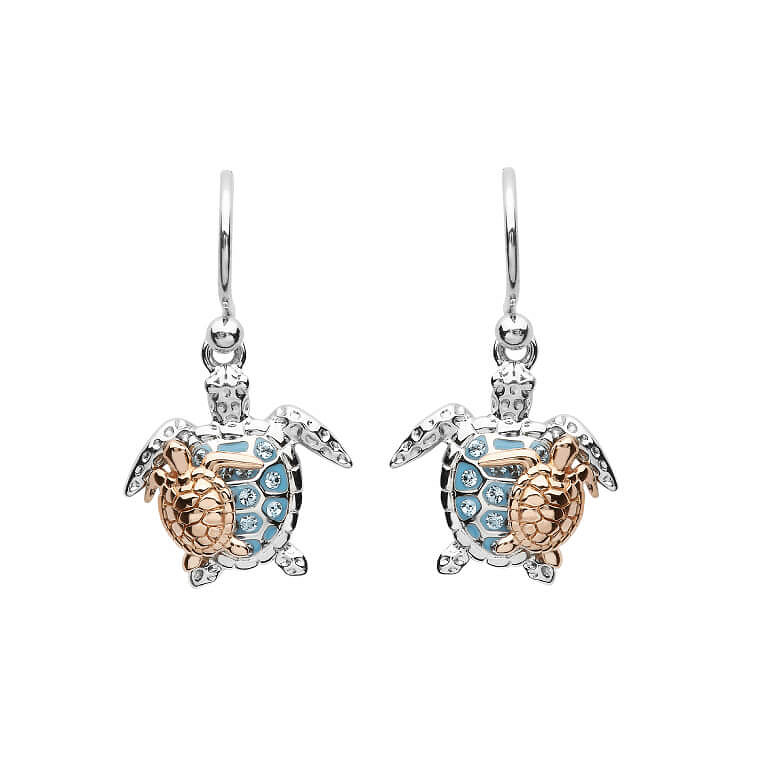 Silver SW Crystal Turtle and Baby Drop Earrings Rose Plate