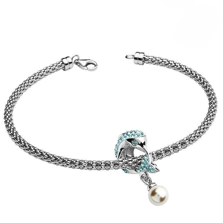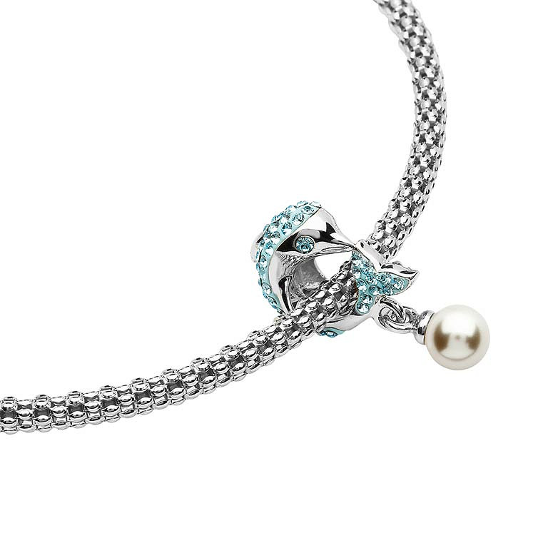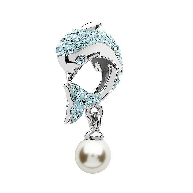 Silver Swarovski Pearl and Aqua Crystal Dolphin Bead