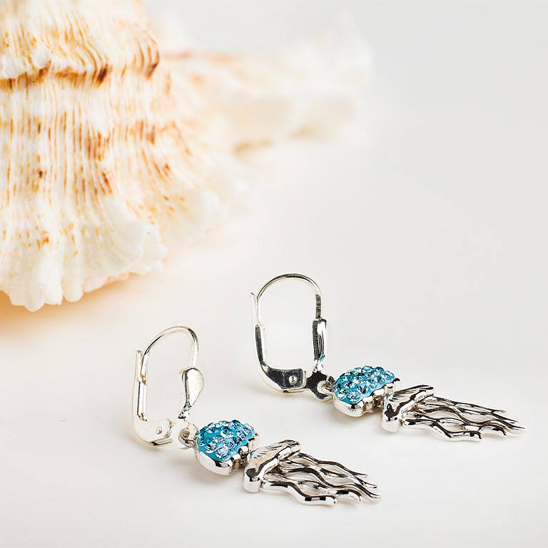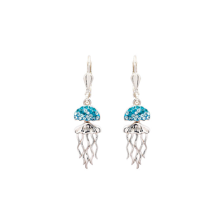 Sterling Silver Aqua Crystal Jellyfish Drop Earrings