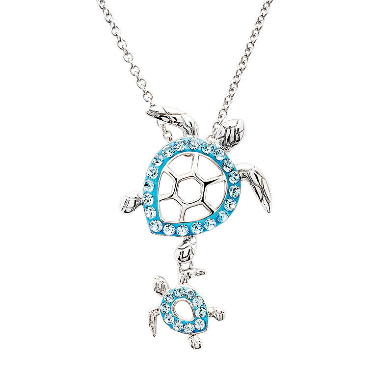 Sterling Silver Aqua Crystal Turtle Necklace