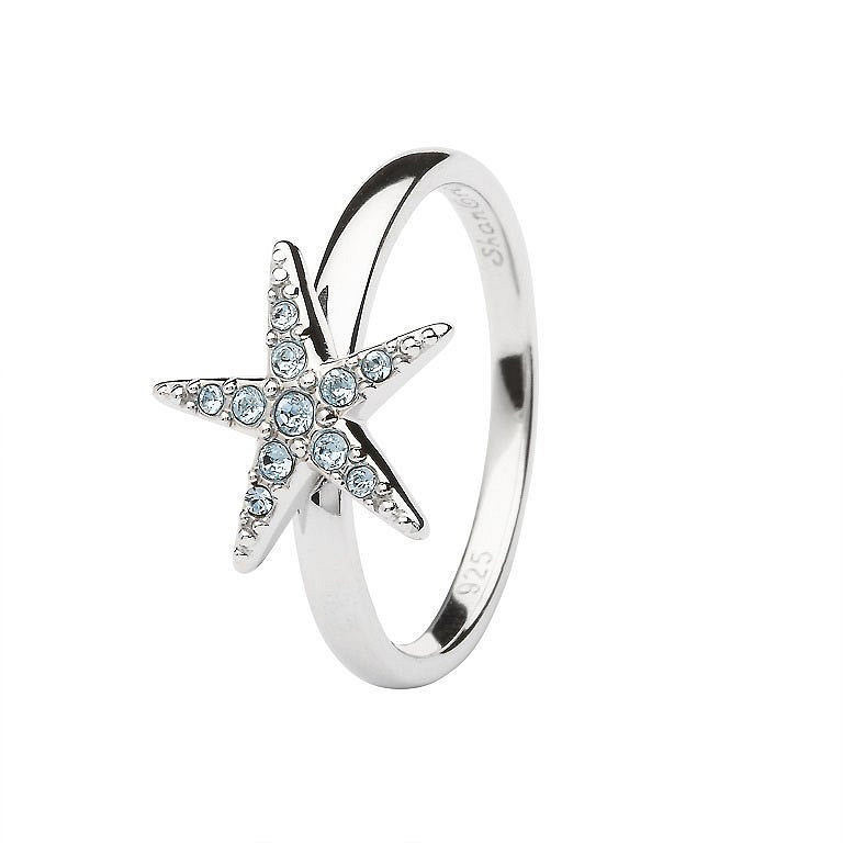 Sterling Silver Aqua Swarovski Star Ring