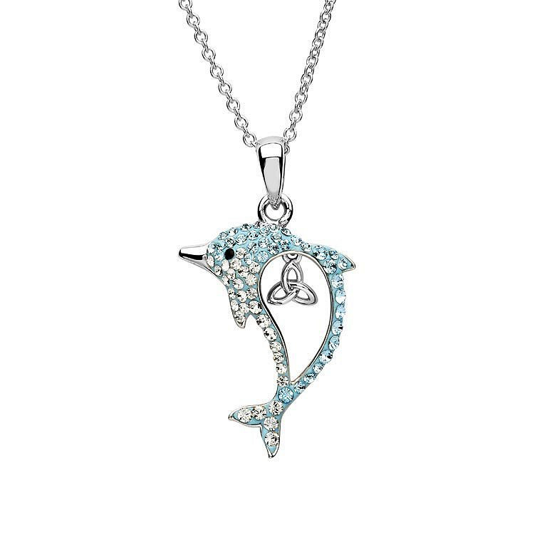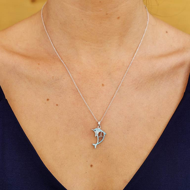 Sterling Silver Aqua Trinity Dolphin Necklace