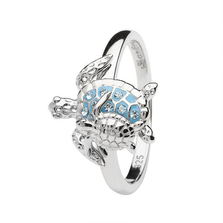 Sterling Silver Aqua Turtle with Baby Ring