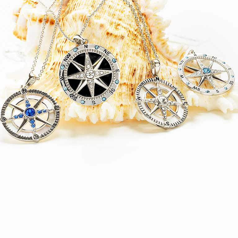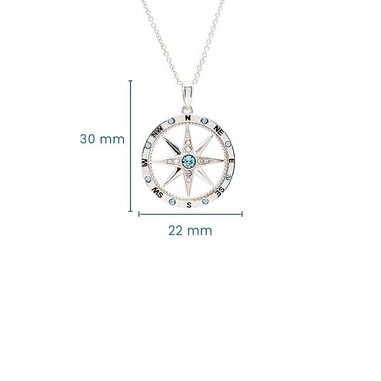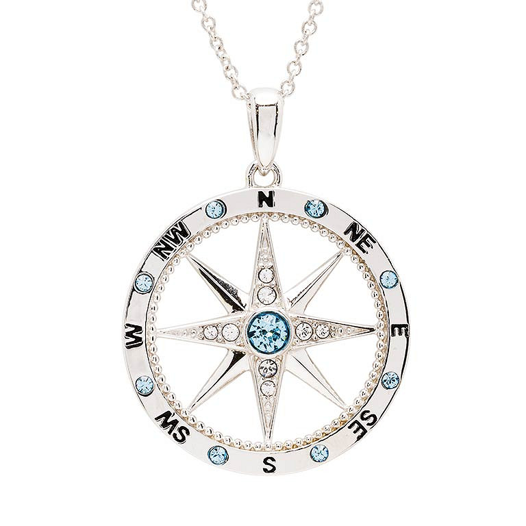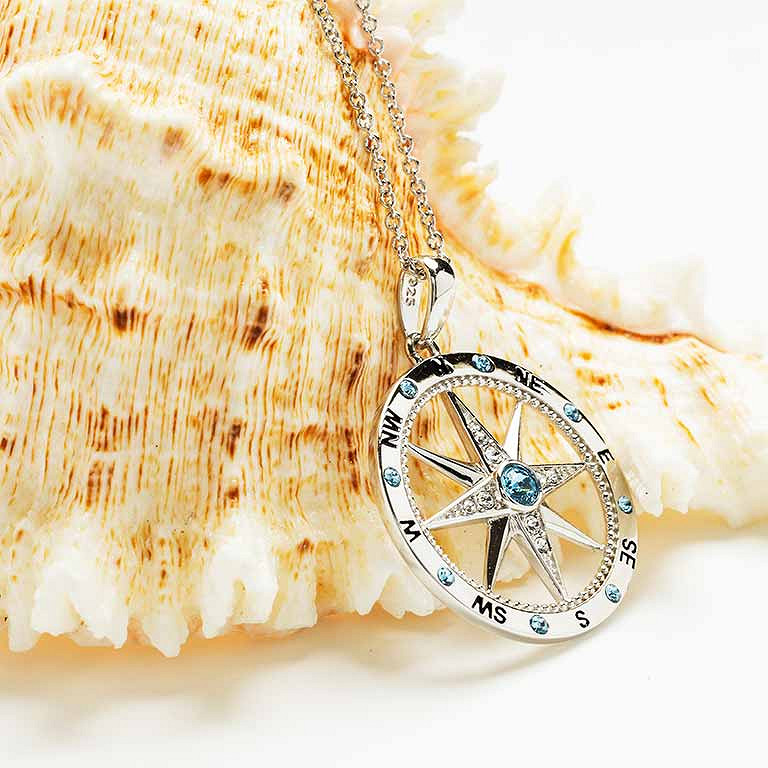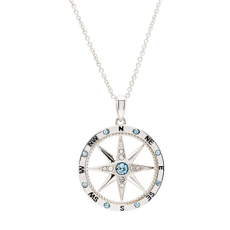Sterling Silver Aqua/White Crystal Compass Necklace