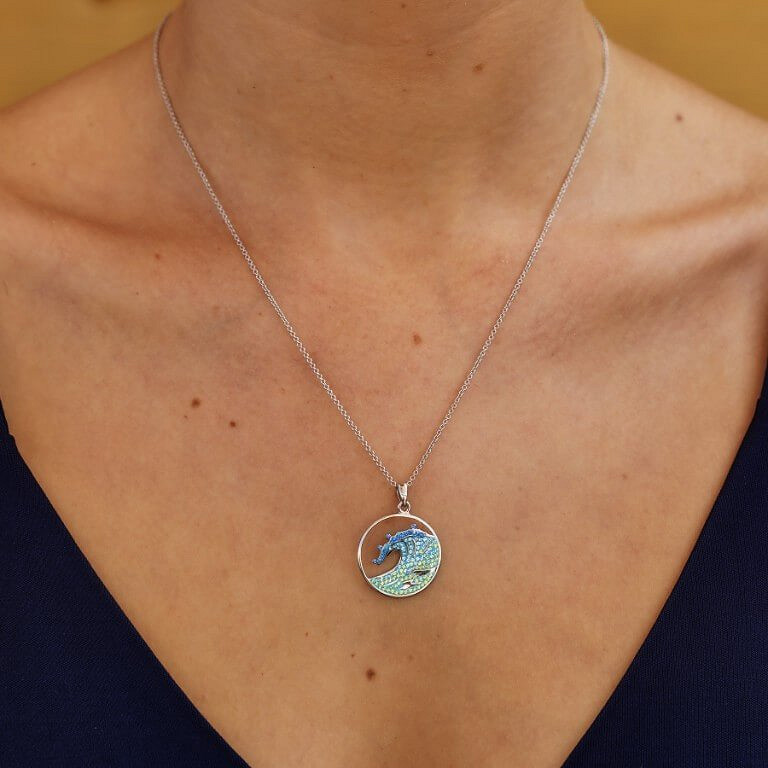 Sterling Silver Blue Wave Swarovski Crystal Necklace