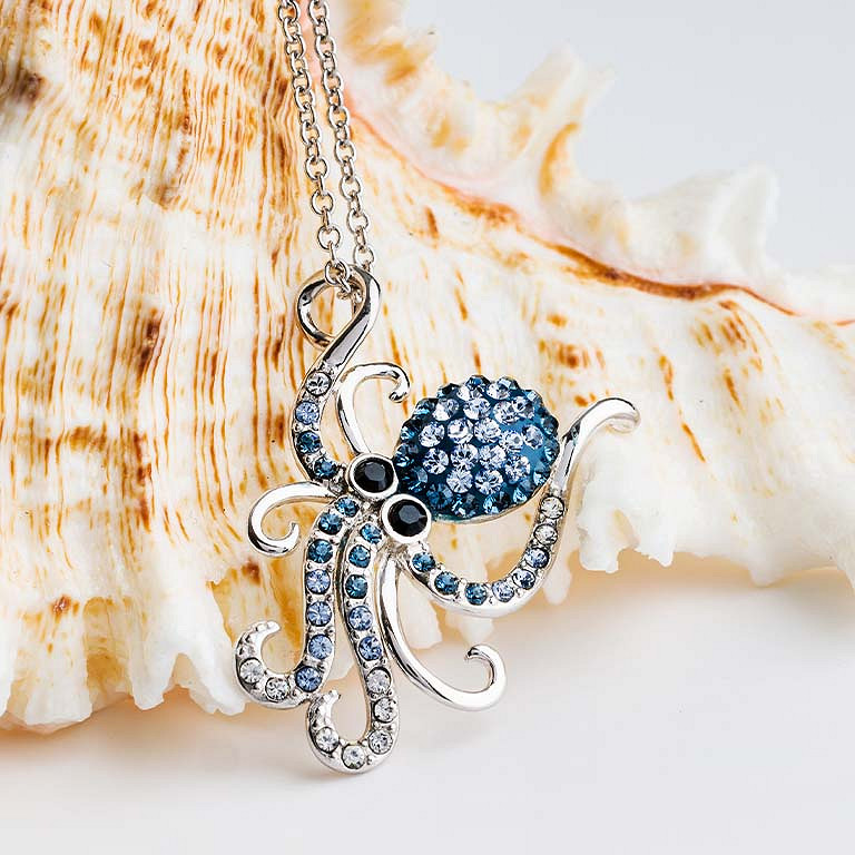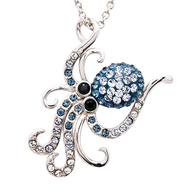 Sterling Silver Blue/White Crystal Octopus Necklace