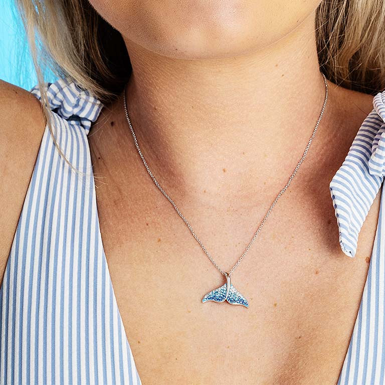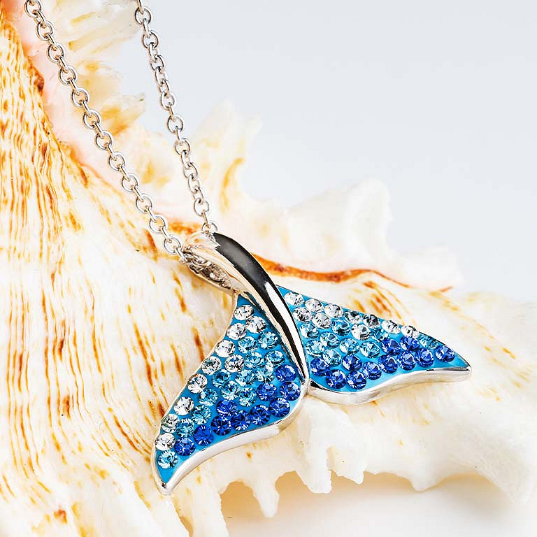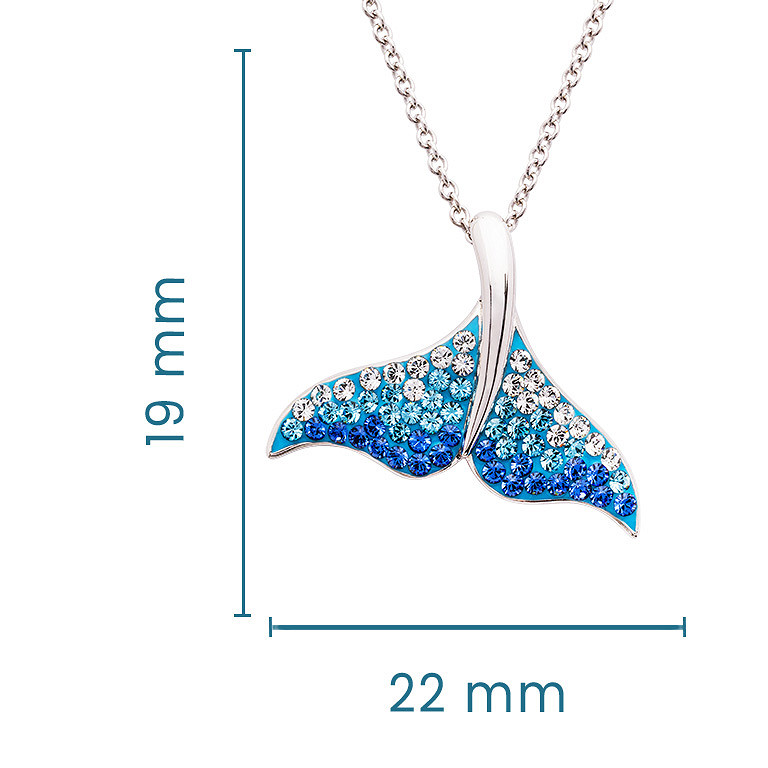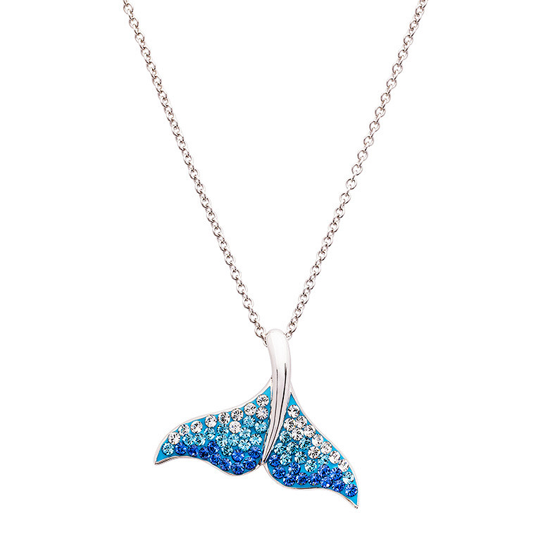 Sterling Silver Blue/White Crystal Whale Tail Necklace