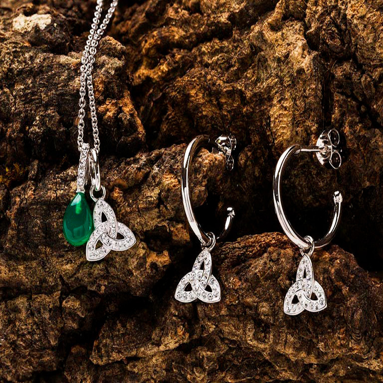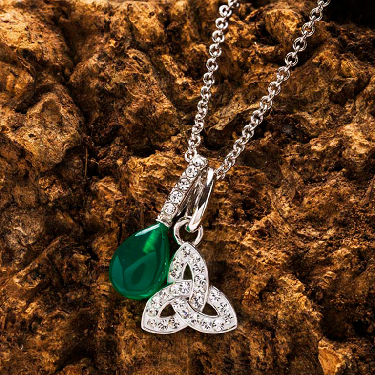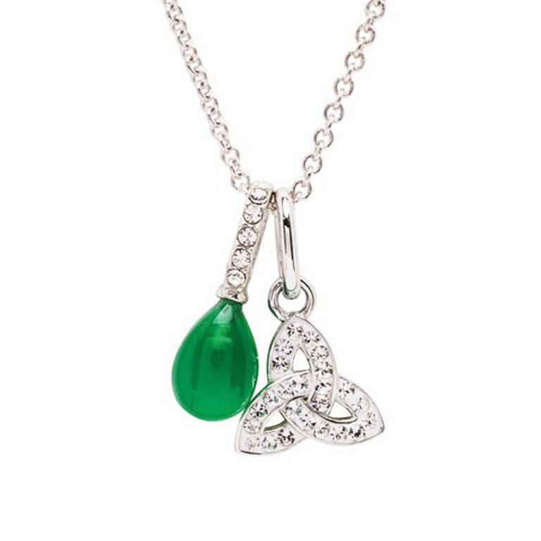 Sterling Silver Crystal and Green Agate Trinity Necklace