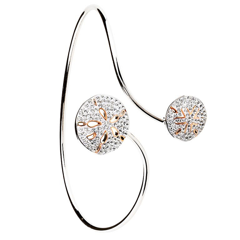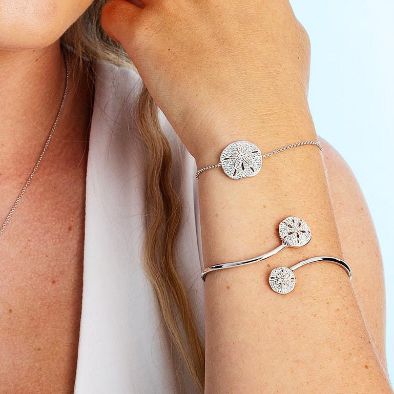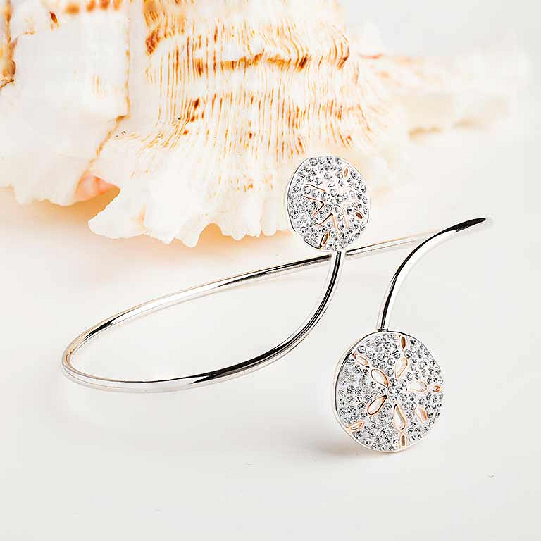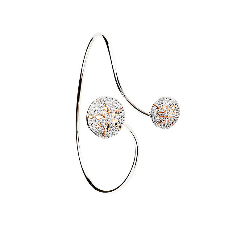 Sterling Silver Crystal Sand Dollar By Pass Bangle