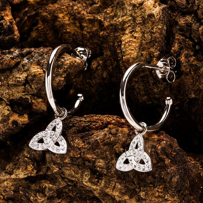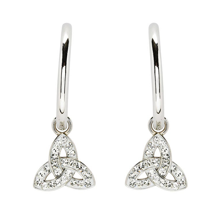 Sterling Silver Crystal Trinity Hoop Earrings