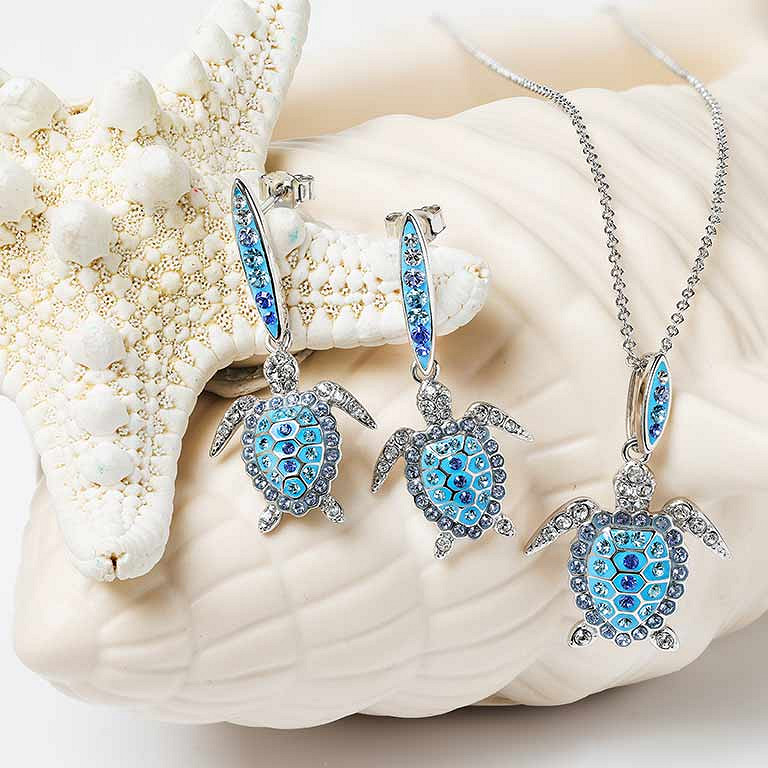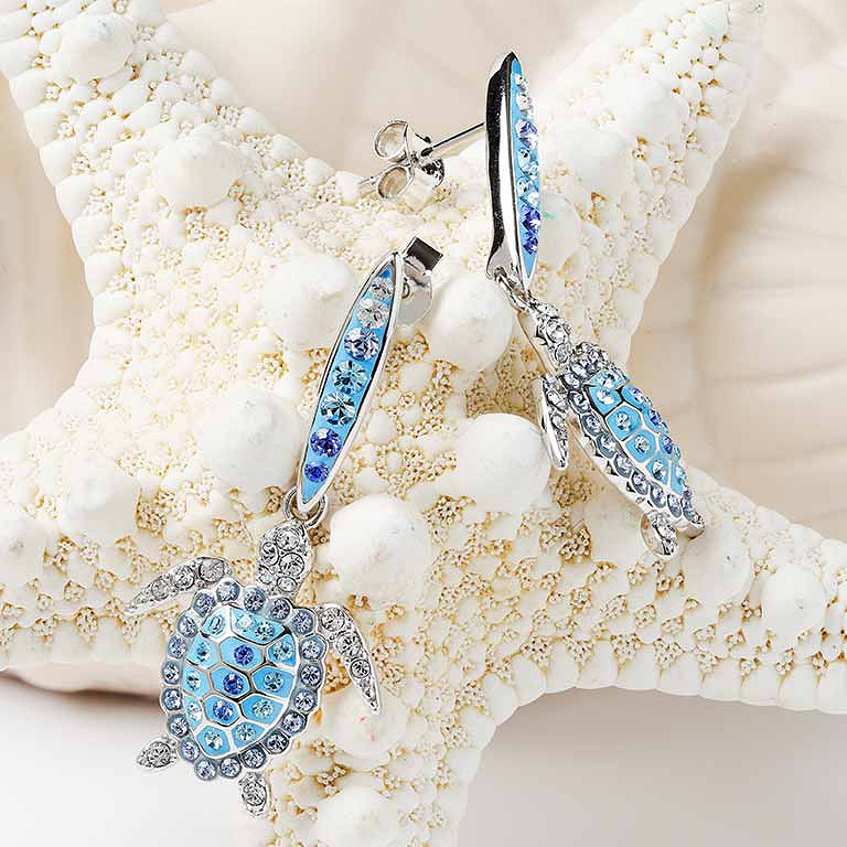 Sterling Silver Crystal Turtle Earrings