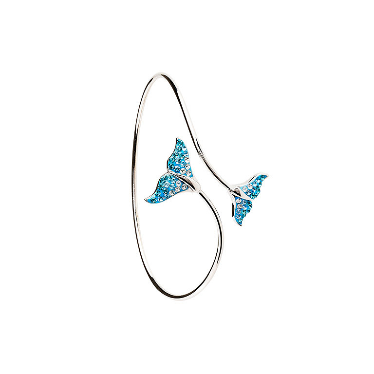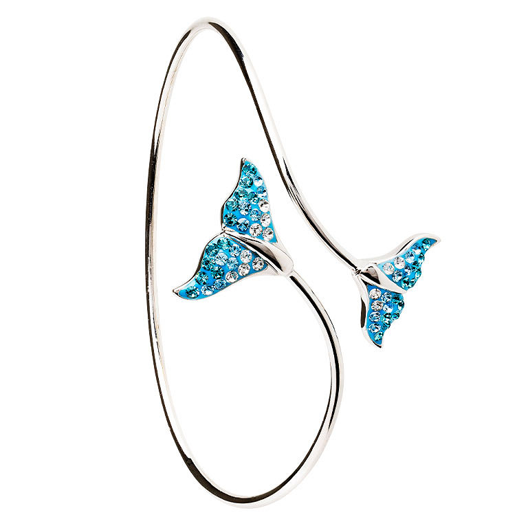 Sterling Silver Crystal Whale Tail By Pass Bangle