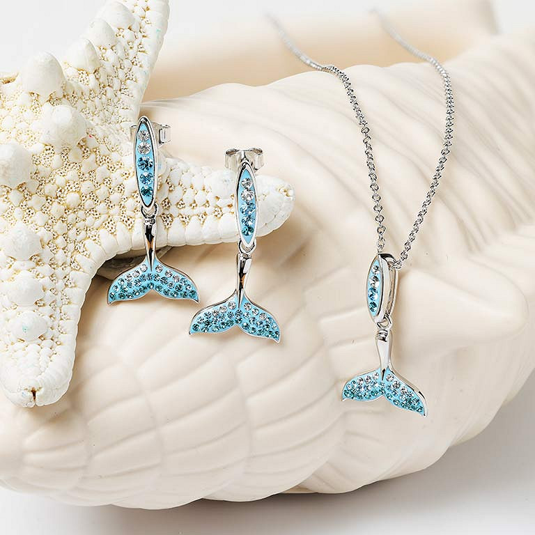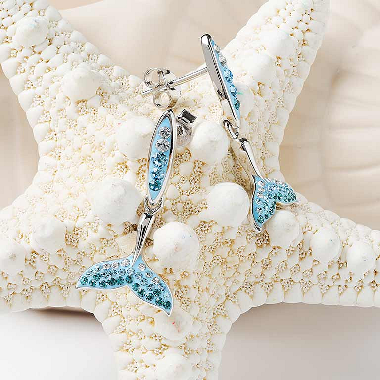 Sterling Silver Crystal Whale Tail Earrings