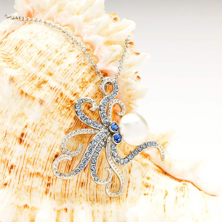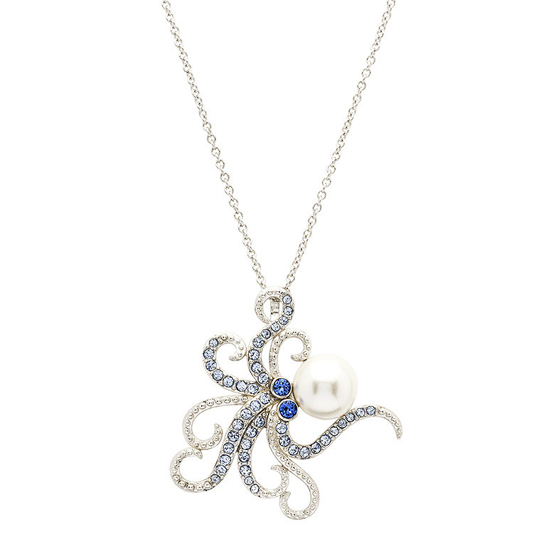 Sterling Silver Pearl and Crystal Octopus Necklace