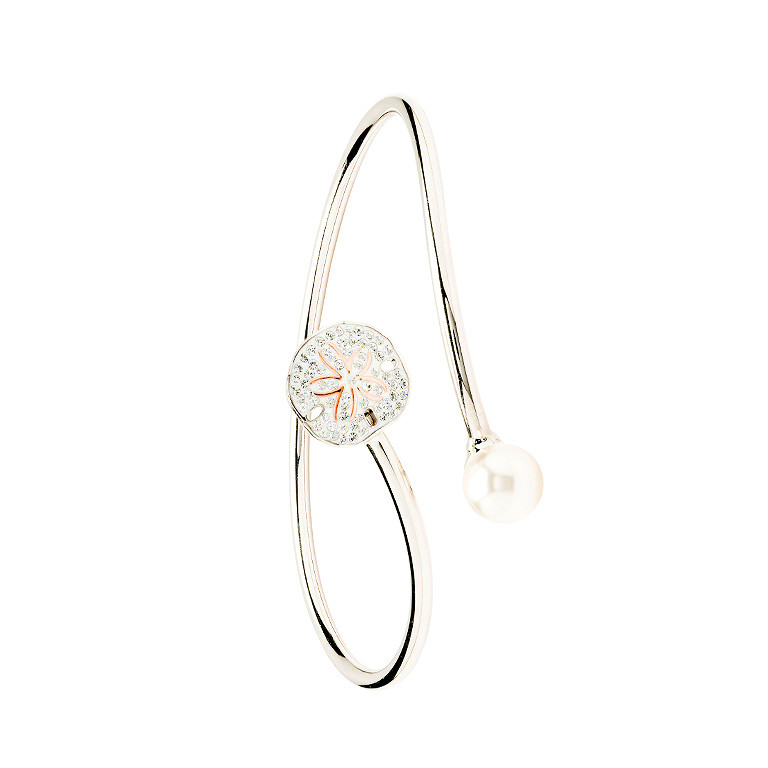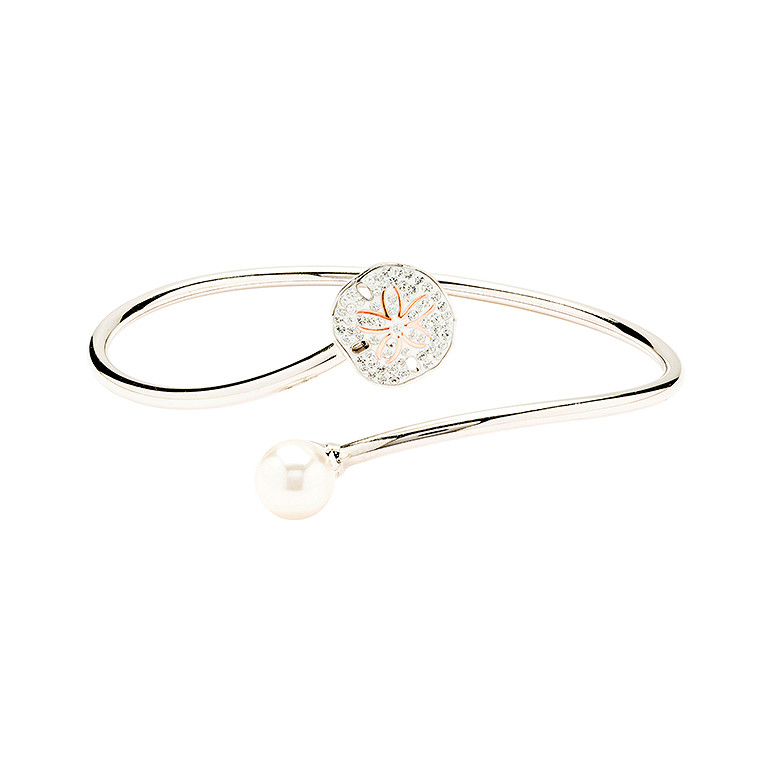 Sterling Silver Pearl and Crystal Sand Dollar Bangle