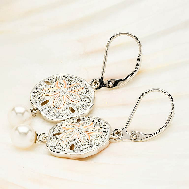 Sterling Silver Pearl and Crystal Sand Dollar Earrings