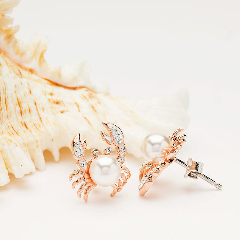 Sterling Silver Pearl / Crystal Rose Gold Crab Earrings