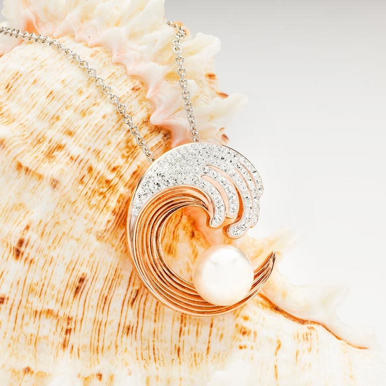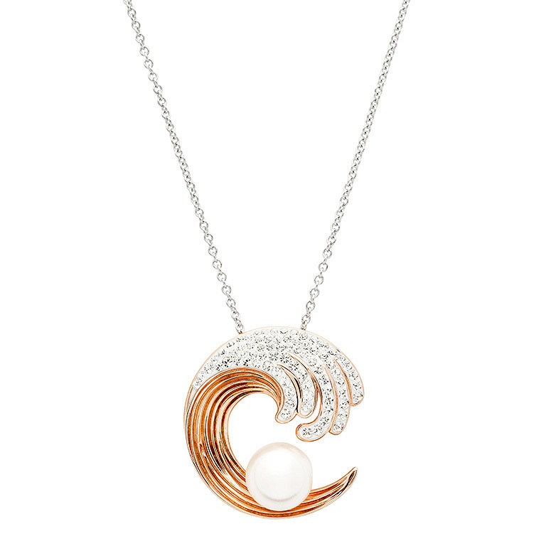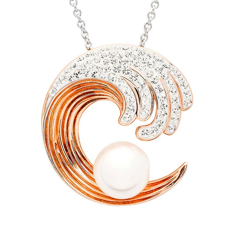 Sterling Silver Pearl / Crystal Rose Gold Wave Necklace