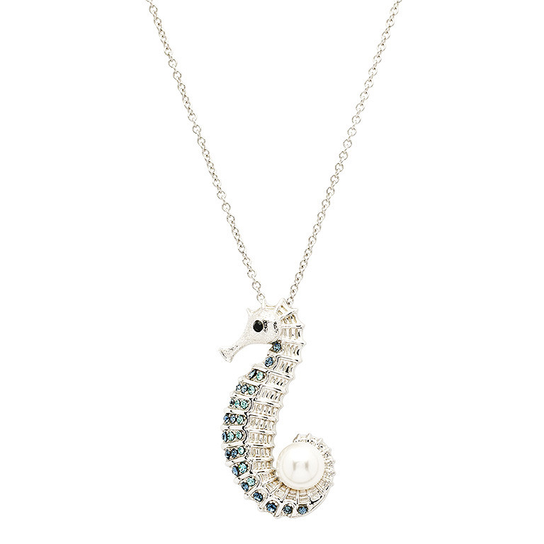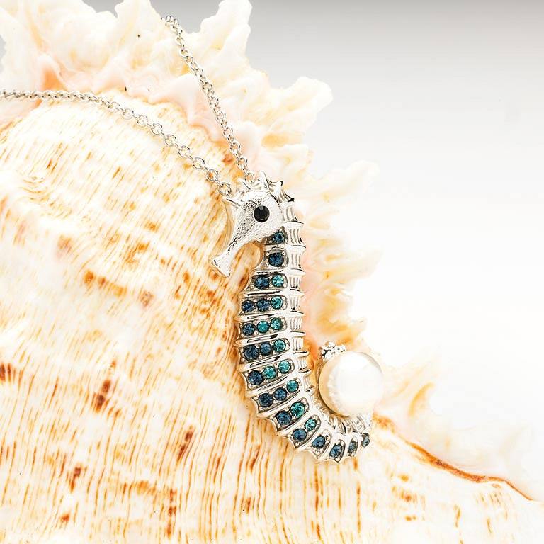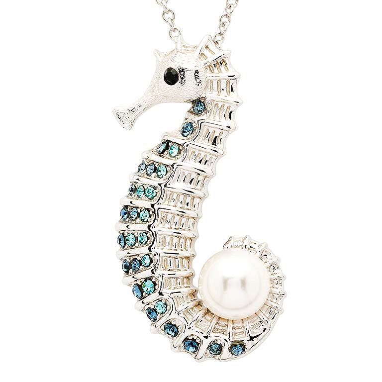 Sterling Silver Pearl / Crystal Seahorse Necklace