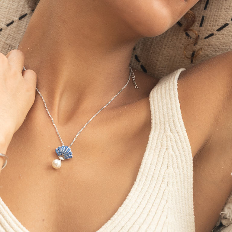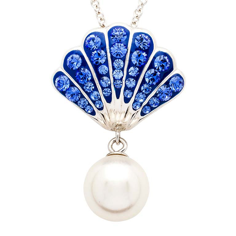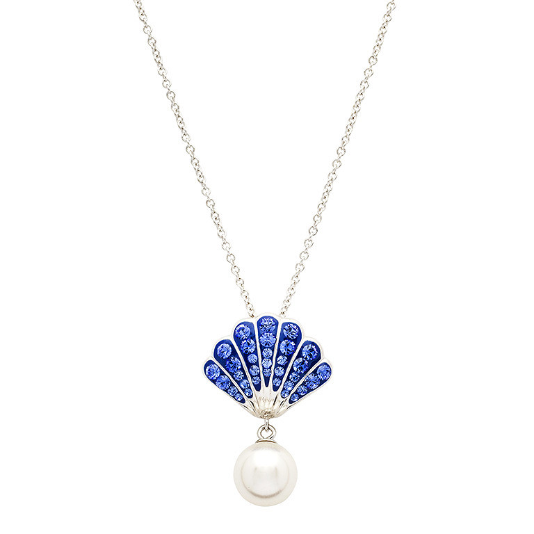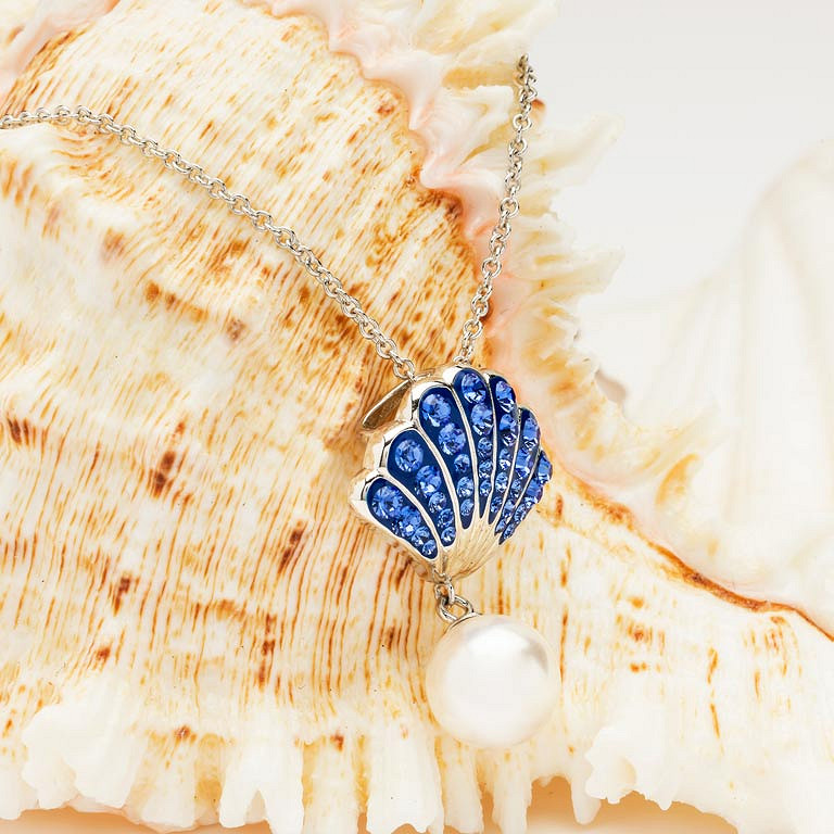 Sterling Silver Pearl / Sapphire Crystal Shell Necklace