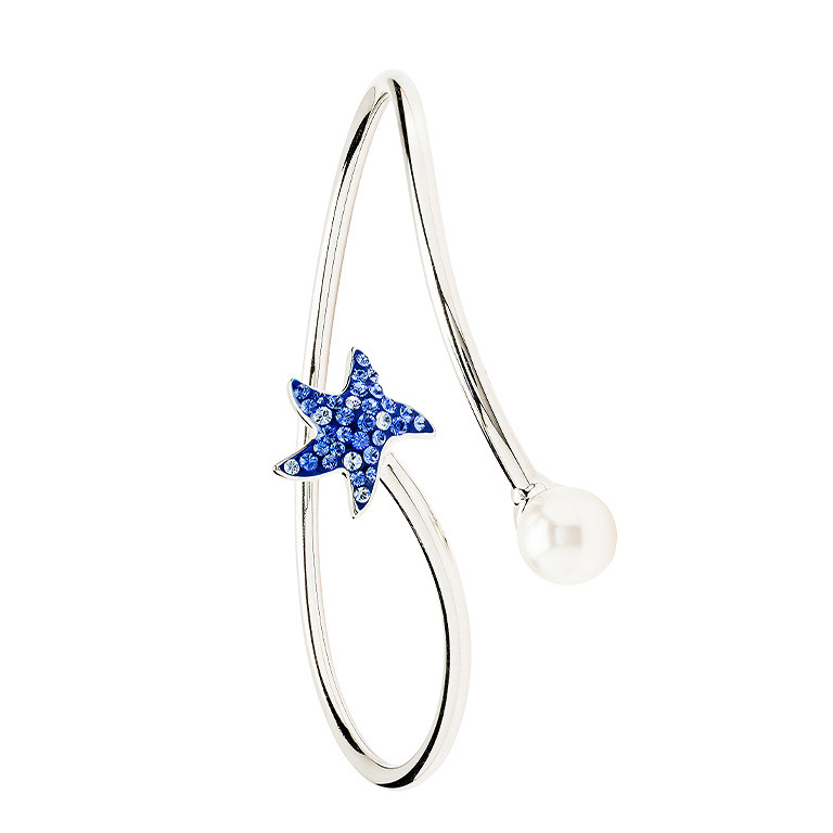 Sterling Silver Pearl & Sapphire Crystal Starfish Bangle