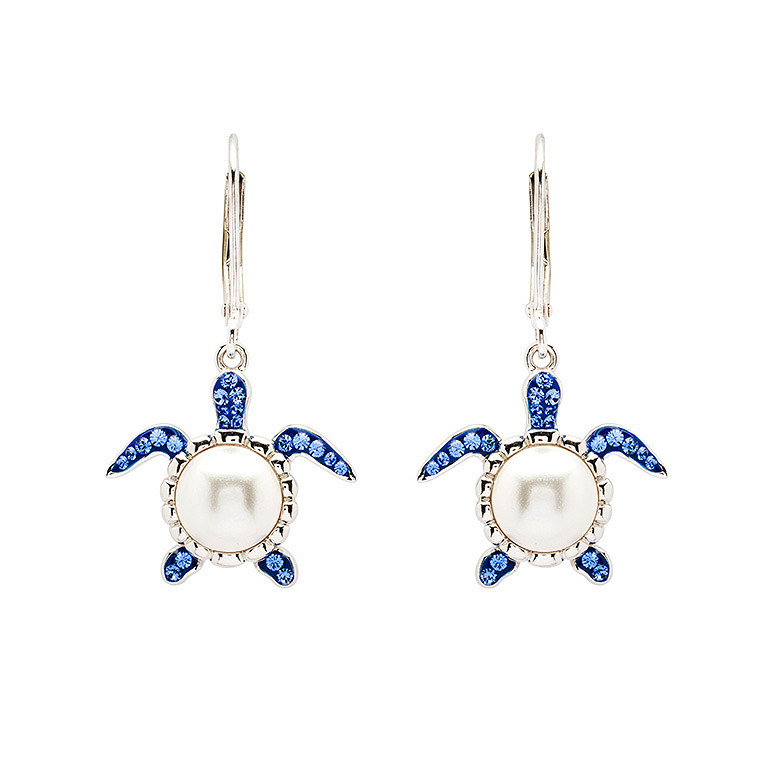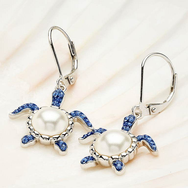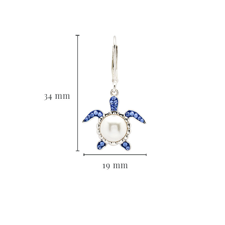 Sterling Silver Pearl Sapphire Crystal Turtle Earrings