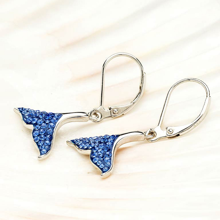 Sterling Silver Pearl / Sapphire Crystal Whale Tail Earrings