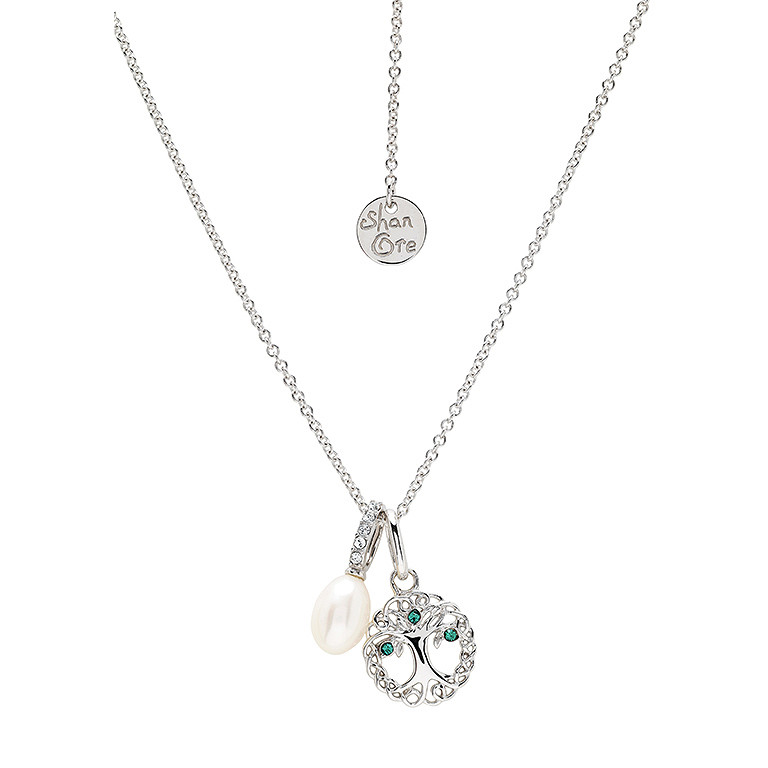 Sterling Silver Pearl/Crystal Tree of Life Necklace