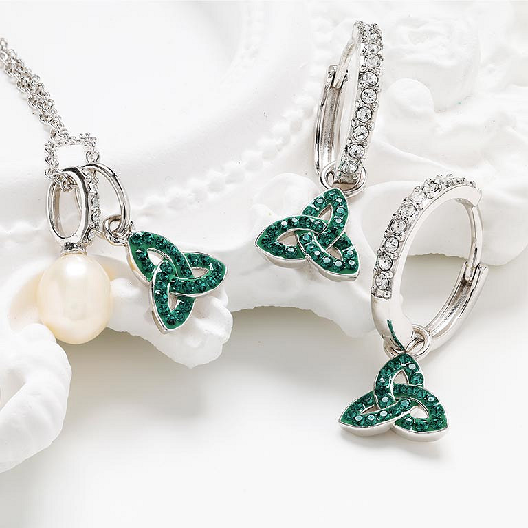 Sterling Silver Pearl/Crystal Trinity Earrings