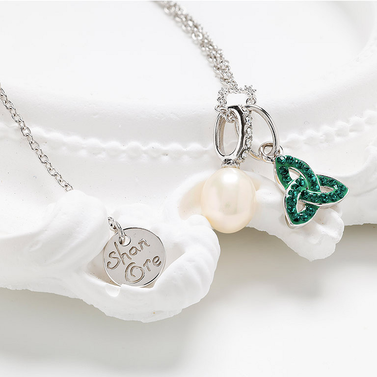Sterling Silver Pearl/Crystal Trinity Necklace