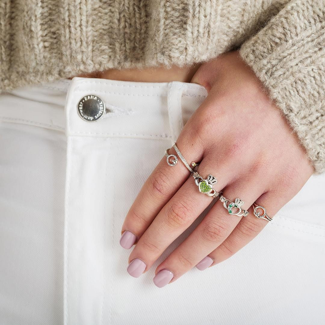 Sterling Silver Peridot Swarovski Claddagh Ring